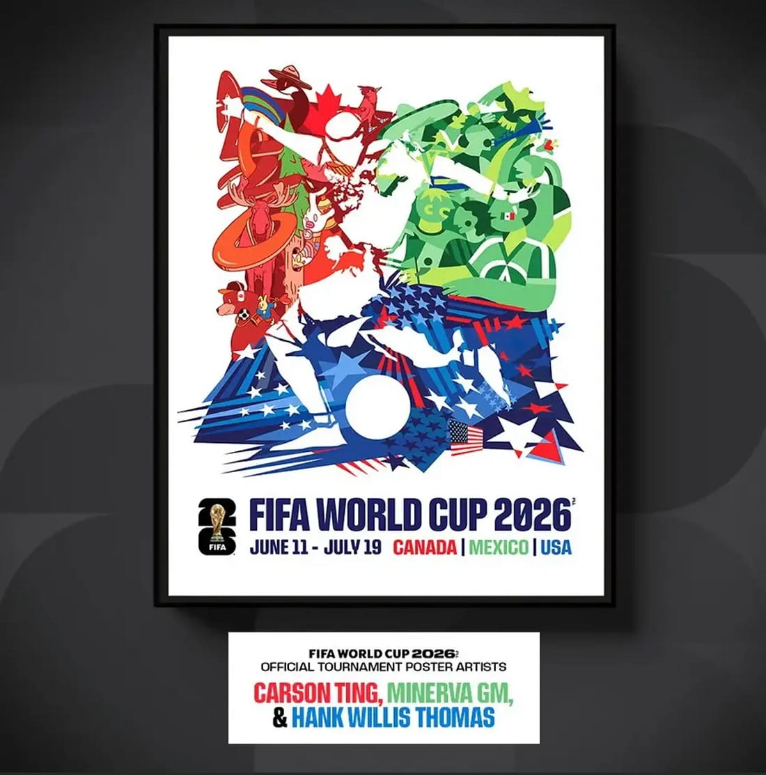 Вперше в історії чемпіонатів світу над створенням офіційного постера працювали одразу троє митців. Канадець Карсон Тінг, мексиканська художниця Мінерва GM та представник США Генк Вілліс Томас об’єднали свої творчі підходи, поєднавши різні художні стилі. За інформацією ФІФА, спільна робота митців покликана продемонструвати, як пристрасть до футболу об’єднує країни та континенти.