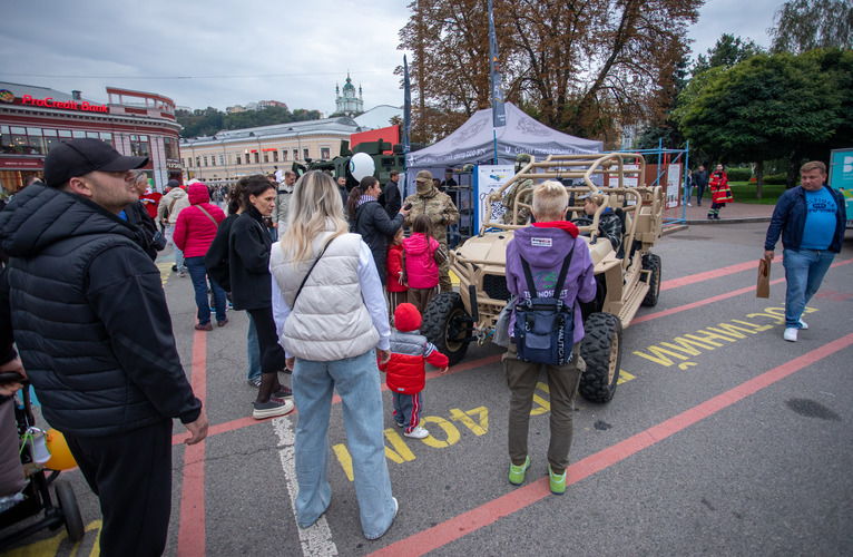 Зокрема, величезну увагу на київській локації привернув многоцільовий бронеавтомобіль BATT, один із найкращих у світі за характеристиками. Посидіти за кермом або потрапити в салон на місця десанту вишукувалася черга бажаючих.