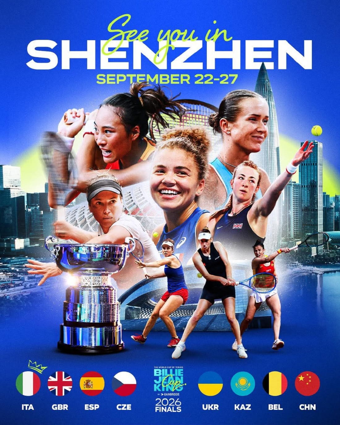 Фінал Кубка Біллі Джин Кінг-2026 відбудеться 22—27 вересня в Шенчжені (Китаї). Окірм господарів турніру та України туди кваліфікувалися італійки, які виграли минулорічний турнір, Велика Британія, Іспанія, Бельгія, Казахстан та Чехія.