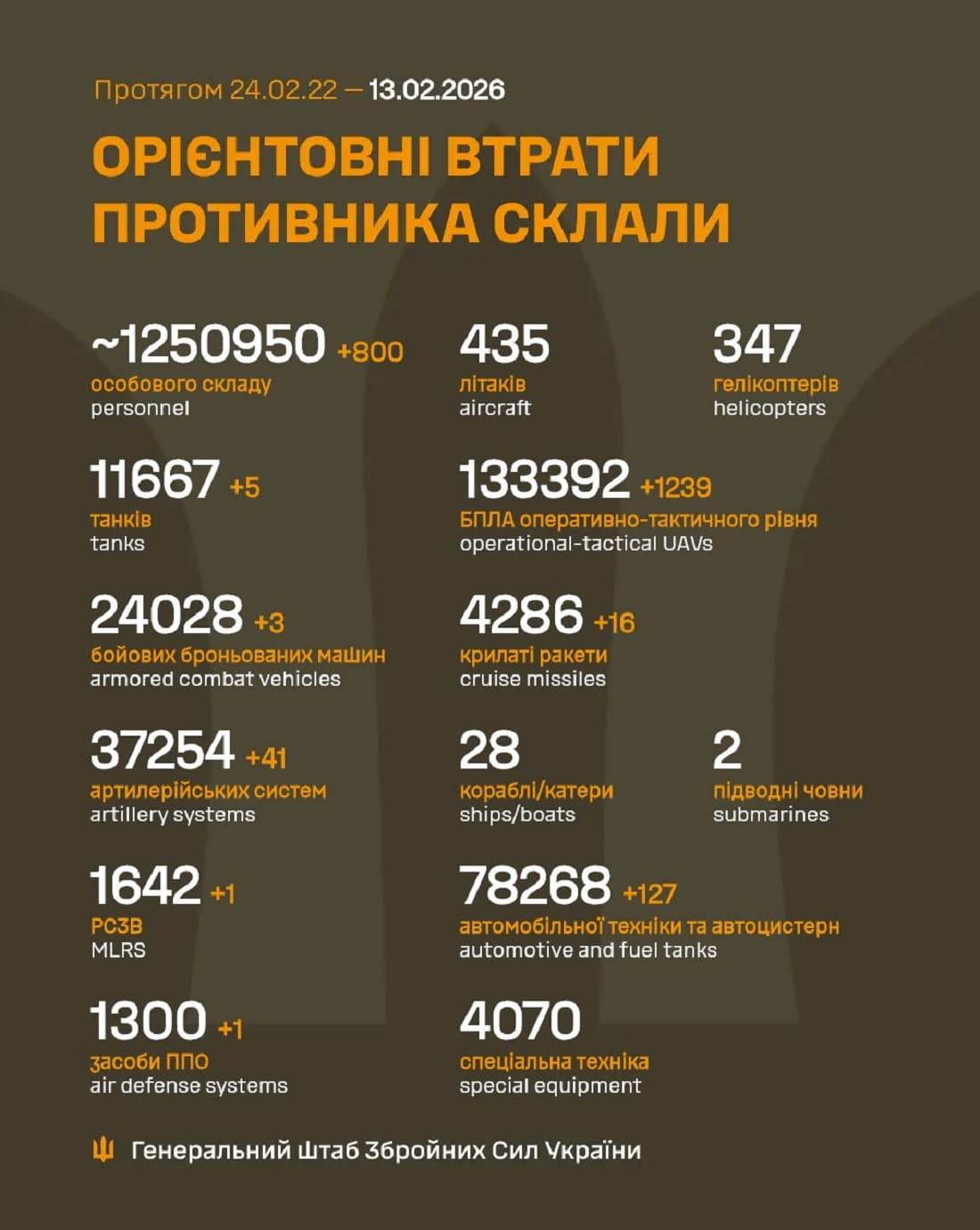 Генеральний штаб Збройних сил України оприлюднив свіжу інформацію про втрати московитських окупантів після початку їхнього повномасштабного вторгнення до нашої країни.