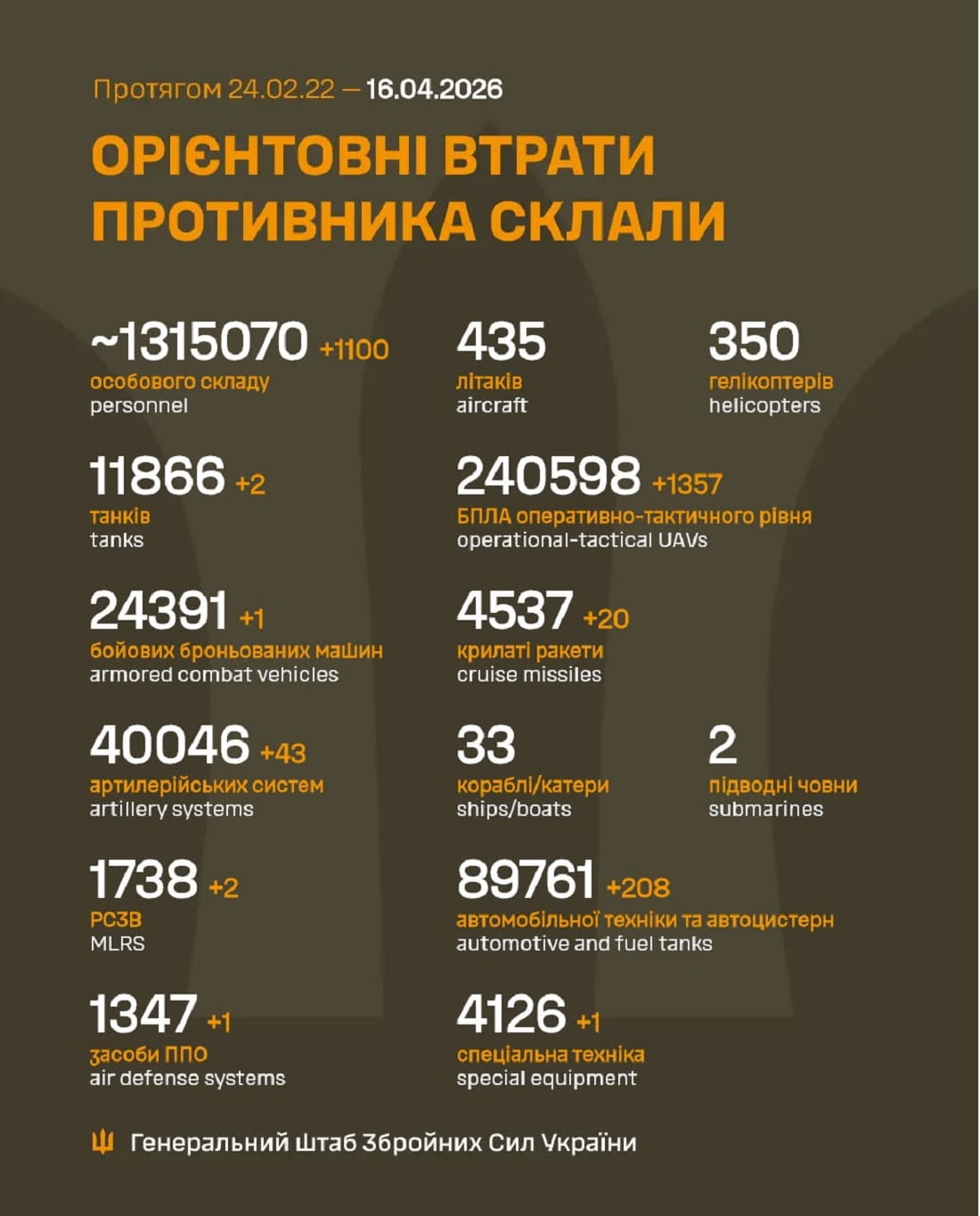 Вже мінус 1 315 070: Генштаб ЗСУ назвав свіжі дані втрат загарбників за час їхнього вторгнення в Україну