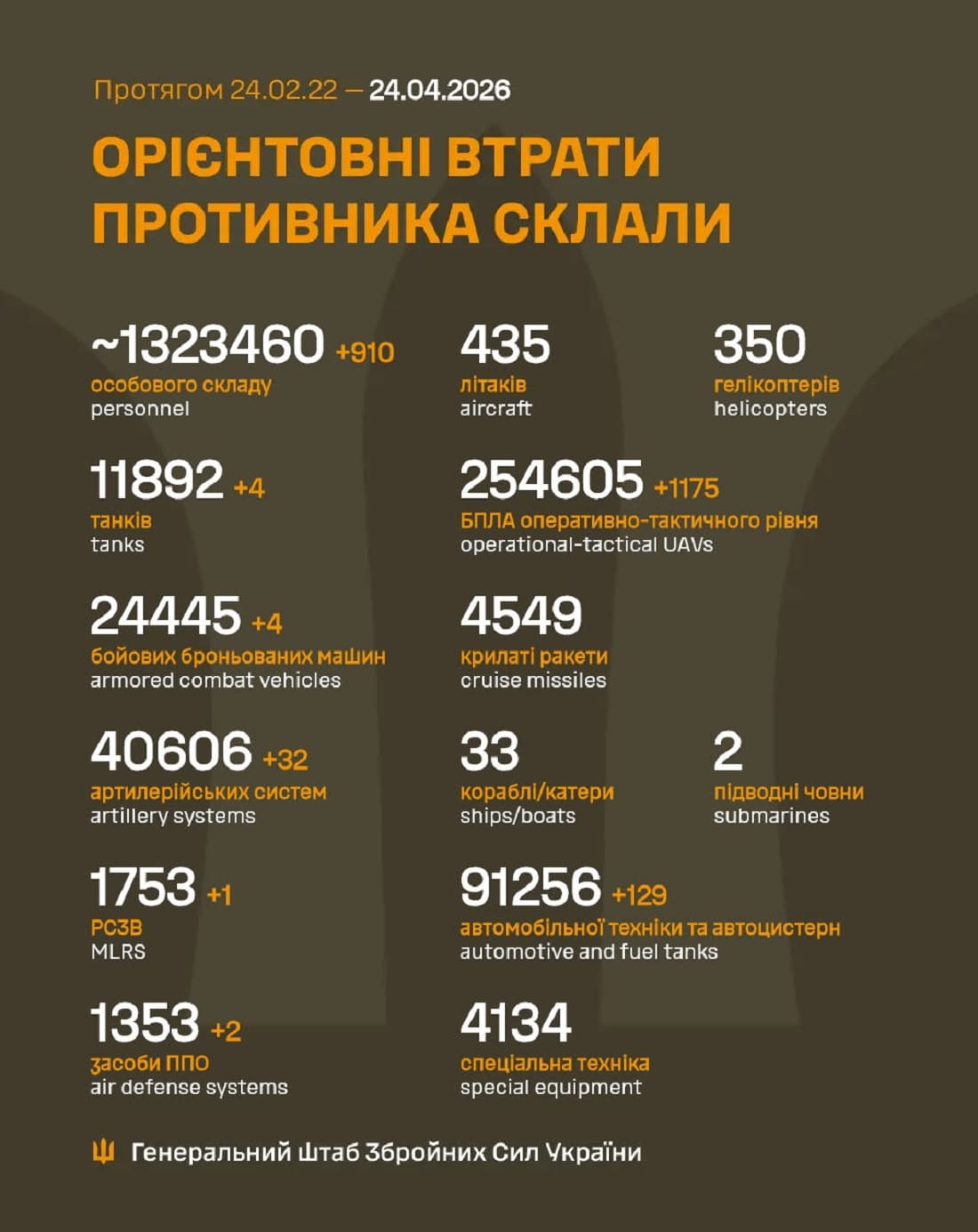 Вже мінус 1 323 460: Генштаб ЗСУ назвав свіжі дані втрат загарбників за час їхнього вторгнення в Україну