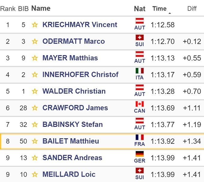 Он опередил швейцарца Марко Одерматта и партнера по команде Маттиаса Майера.