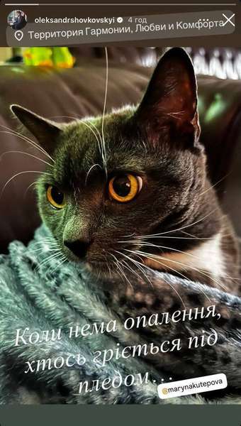 На фото — домашній улюбленець, закутаний у плед, який намагається зігрітися в оселі. Без гучних слів і пафосу Шовковський короткою фразою передав атмосферу буднів: у домівках холодно, і тепло доводиться шукати в найпростіших речах. У публікації він також позначив свою дружину Марину Кутєпову.
