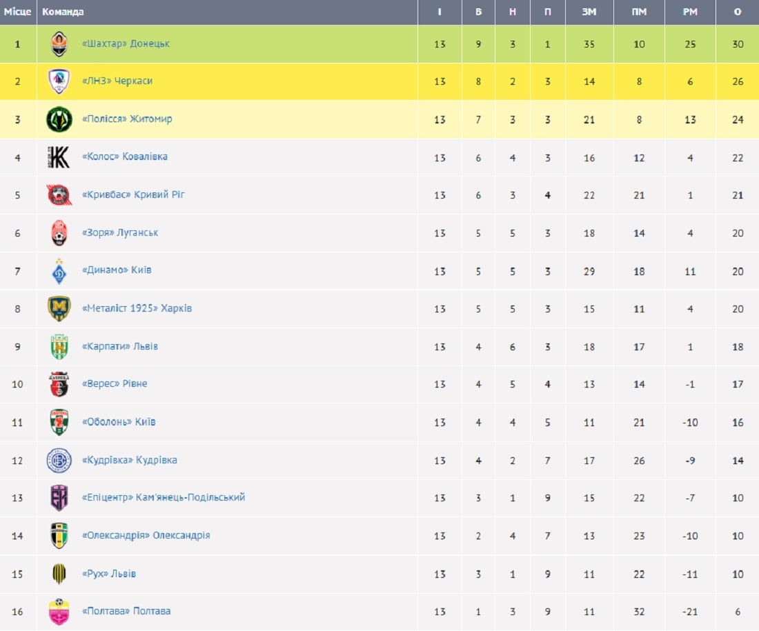 Закінчилася програма 13-го туру української Прем’єр-ліги: головний невдаха — київське Динамо.