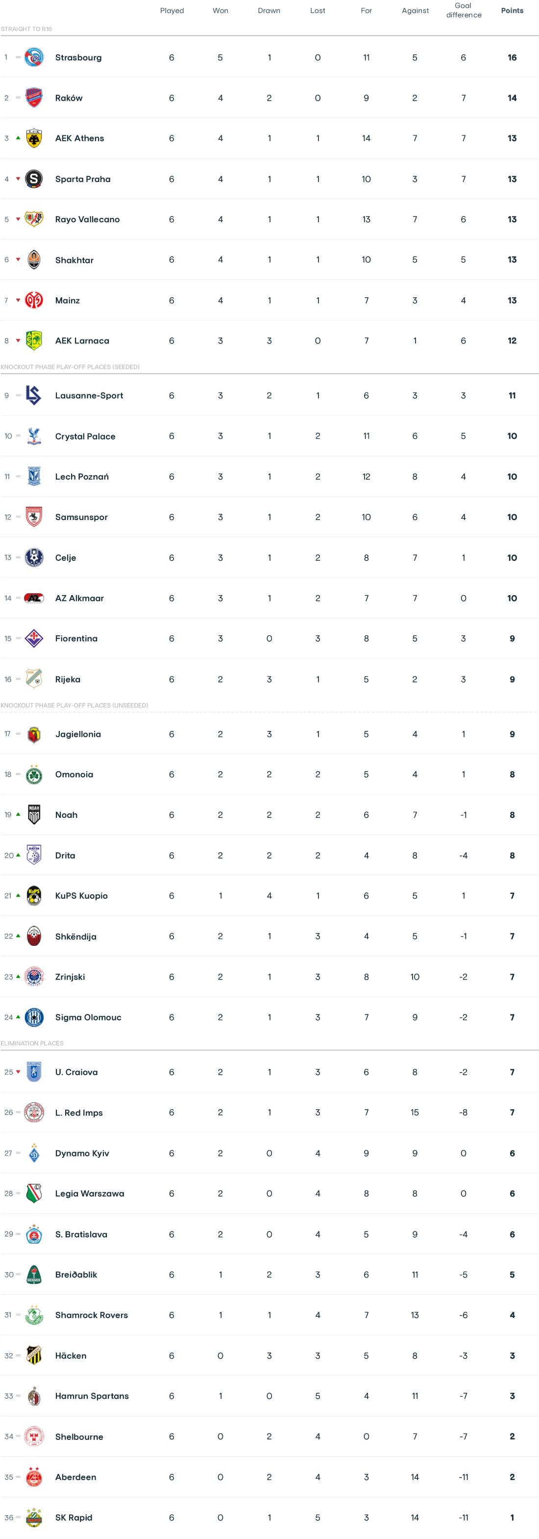Нагадаємо регламент ЛК. Після закінчення основного етапу, перші вісім команд автоматично пройшли до 1/8 фіналу. Команди, що фінішували з 9-го по 24-те місця зіграють в 1/16 фіналу. Команди, що посядуть 25—36 позиції закінчили євросезон.