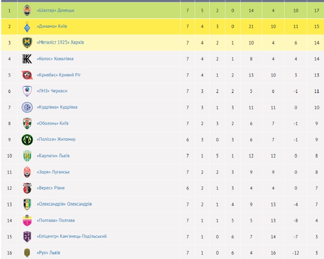 У 7-му турі української Прем’єр-ліги залишилося зіграти лише один матч, а в турнірній таблиці вже відбулися знакові пересування.