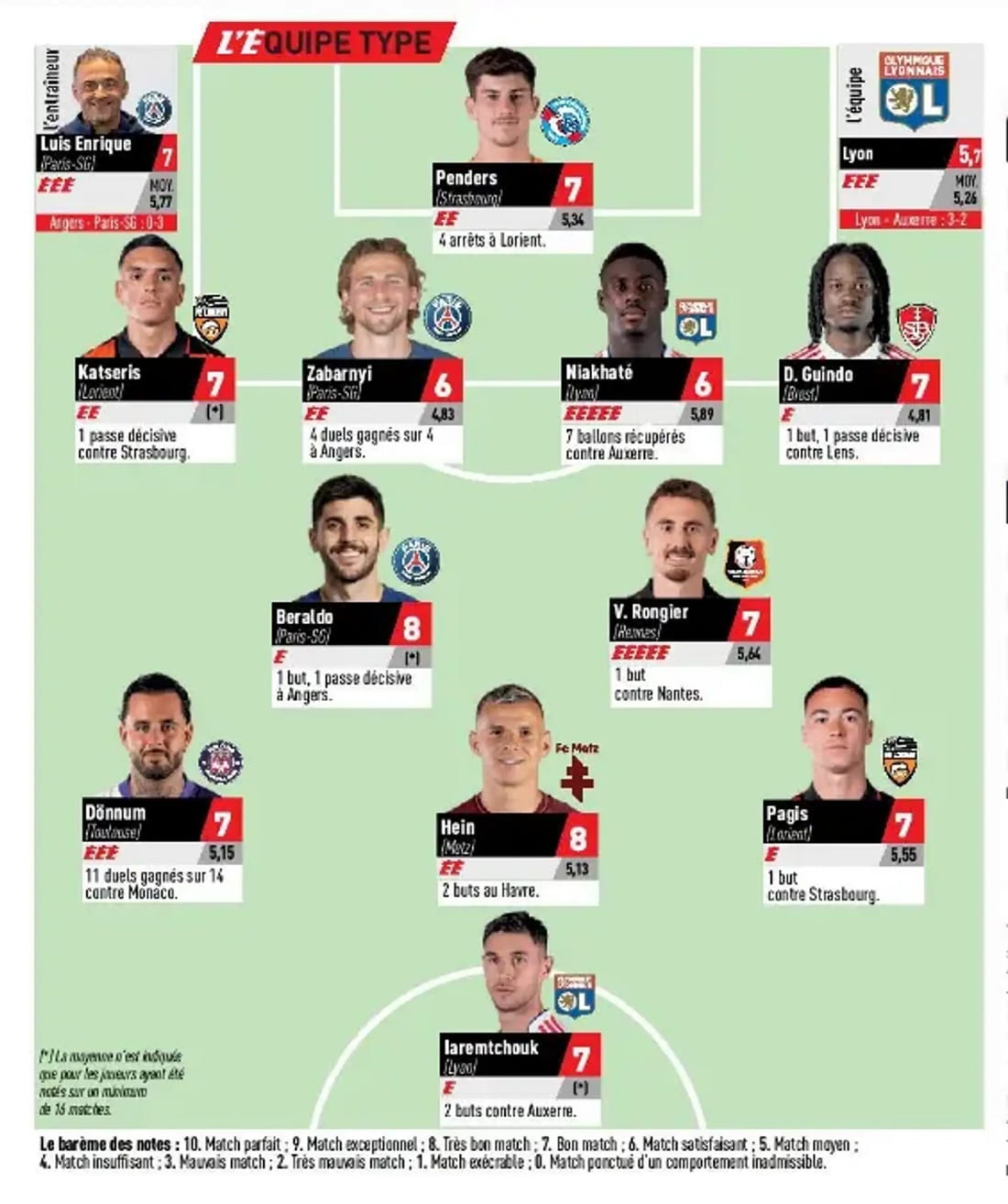 Для Забарного це друге потрапляння до символічної збірної туру Ліги 1 від L’Équipe (дебютне було у березні після матчу проти Гавра), для Яремчука — перше.