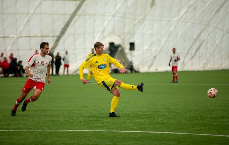 В ньому зустрілися об’єднана команда ветеранів збірної України та спецпризначенців, суперником якої стала Збірна зірок Польщі.